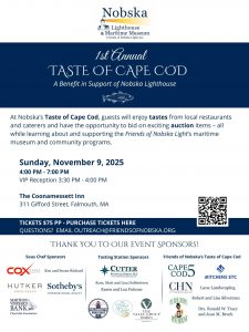 Please join us for an unforgettable evening of culinary adventure and celebration of Nobska Light. Taste of Cape Cod is a new, annual fundraiser to benefit the iconic Nobska Lighthouse and support the organization’s mission to preserve, educate and share the rich maritime history with future generations.